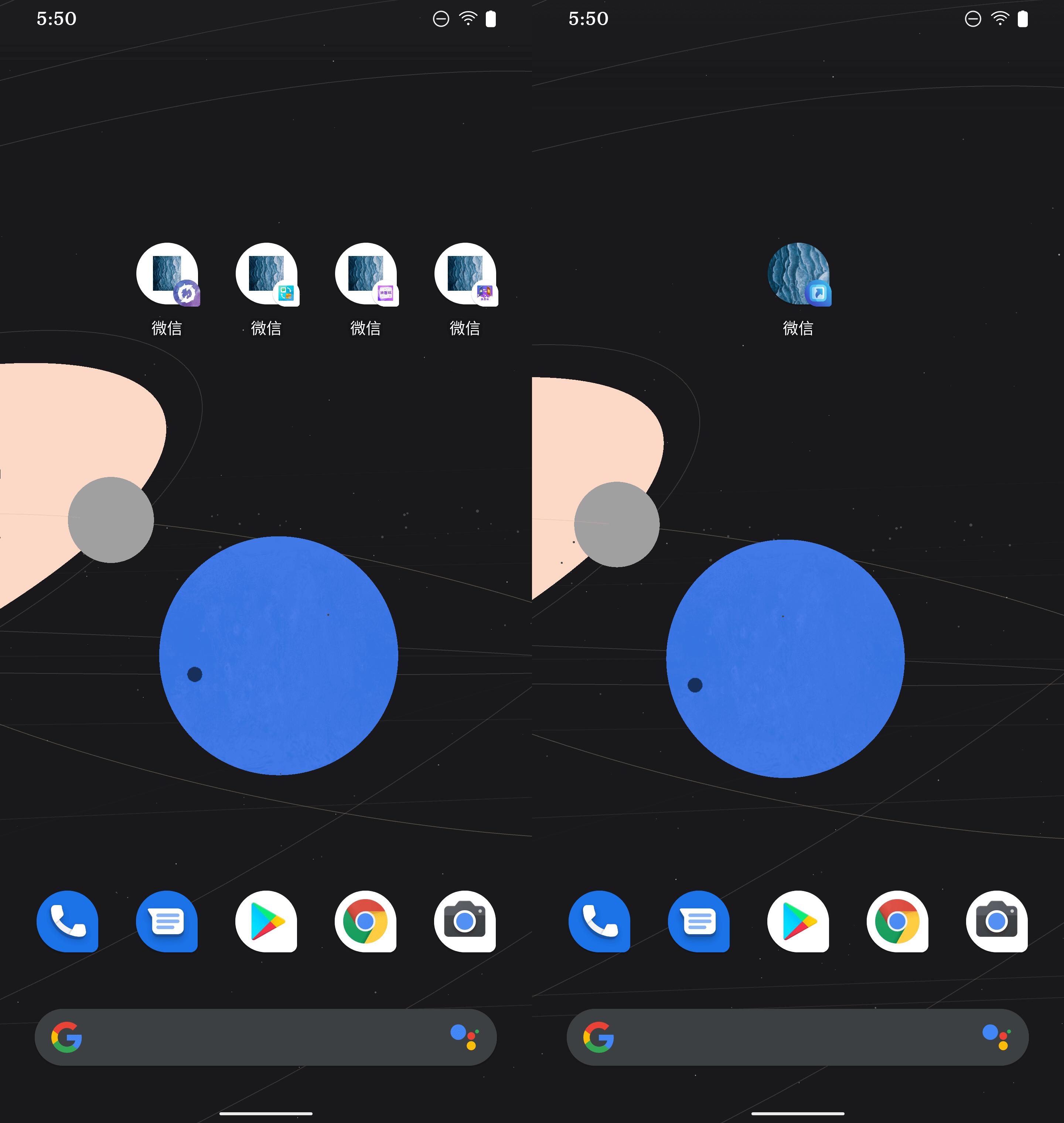 在实际的开发、测试过程当中,针对一些机型上创建出的图标会被系统包裹以白边的情况,开发人员做了特别的努力进行攻关。以下是对比图,左为其他 app 创建出的图标效果,右为快捷图标创建出的图标效果。嗯,据说程序员得意了好几天。不过又说此功能还需要稍做优化,近期上线。