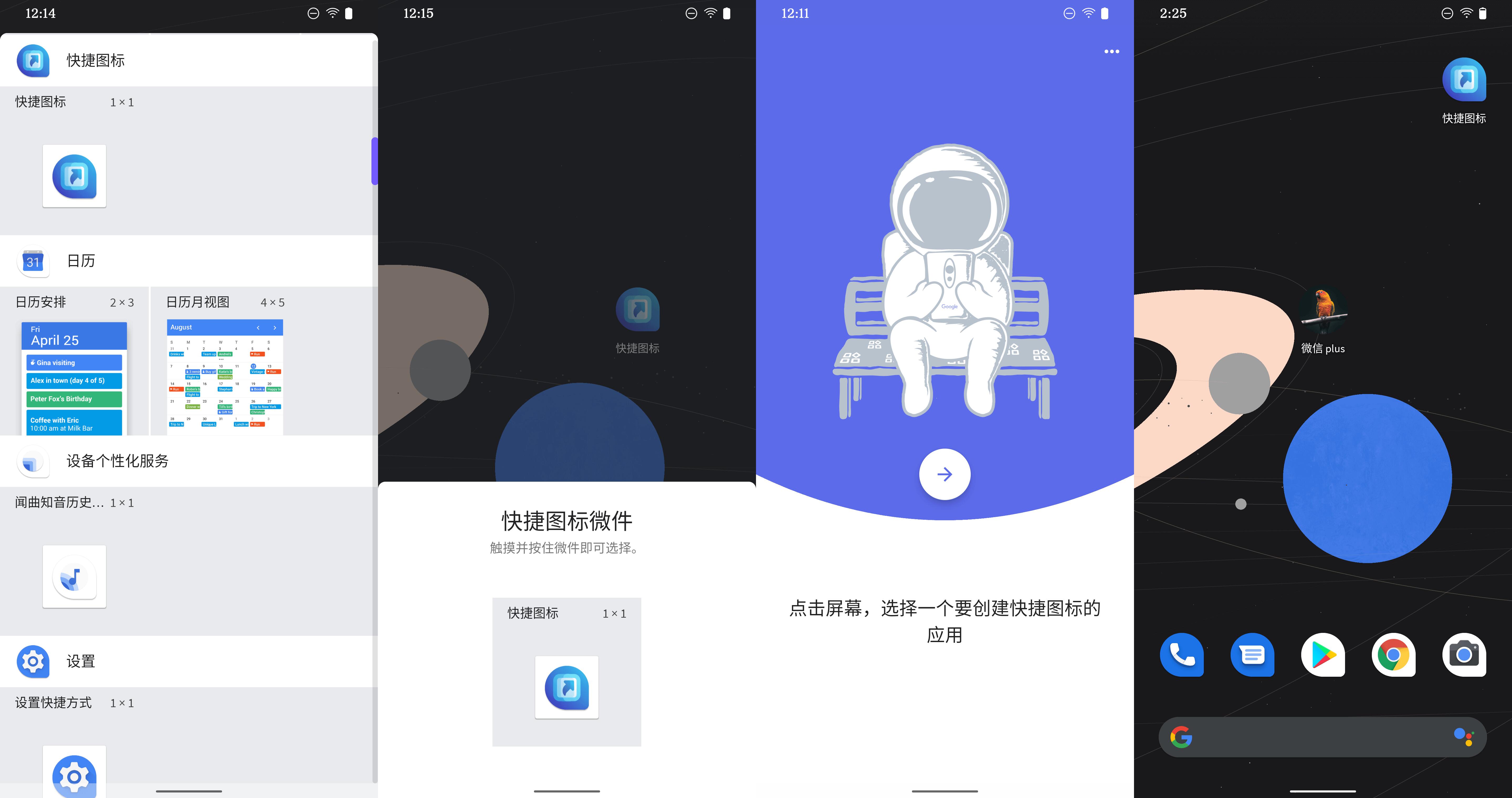 如果看官的眼神好,恐怕已经注意到在上文中,小部件方式进入的首页中,和常规方式进入的首页中,那个宇航员端坐的长椅,看上去似乎有点不同。像类似这样的小东东,快捷图标中还存在(可能后续还会新增),有待大家发现。