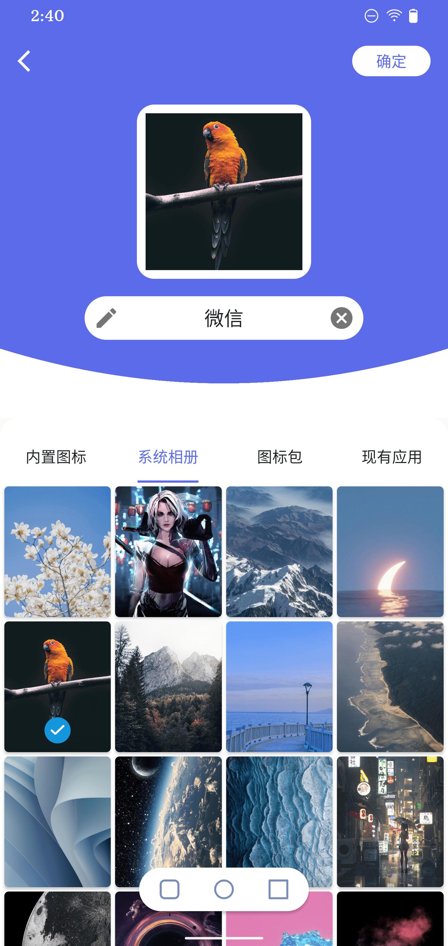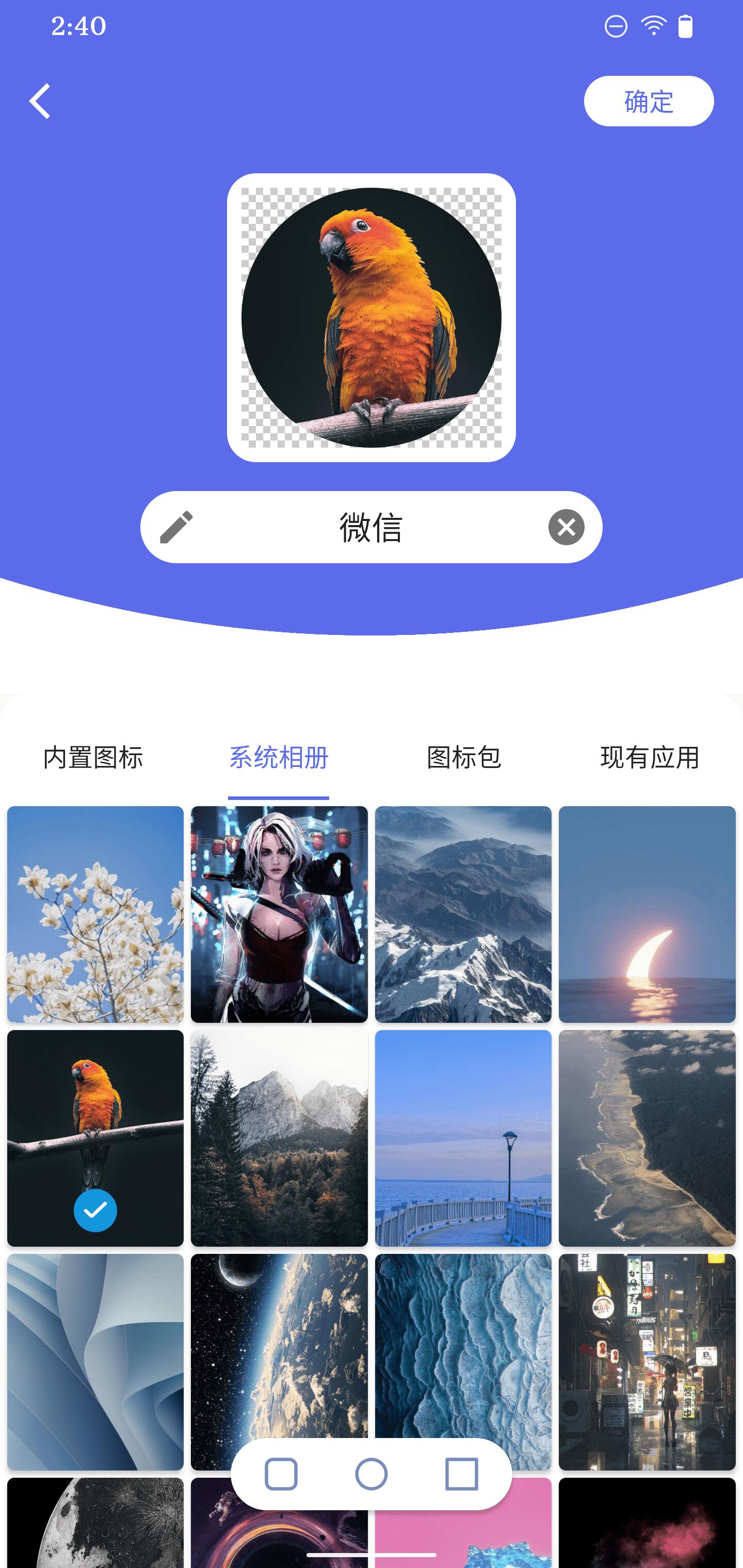 当然,更自由和灵活的方式,是选择相册中的图片(例如,宝贝的照片,二次元的偶像等)来现场制作一个中意的图标。