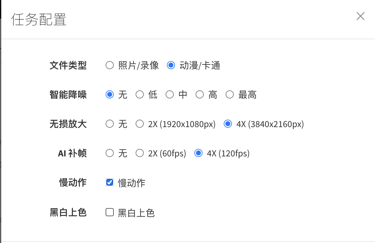 支持视频、图片、gif、zip 文件 无损放大、AI 补帧、上色