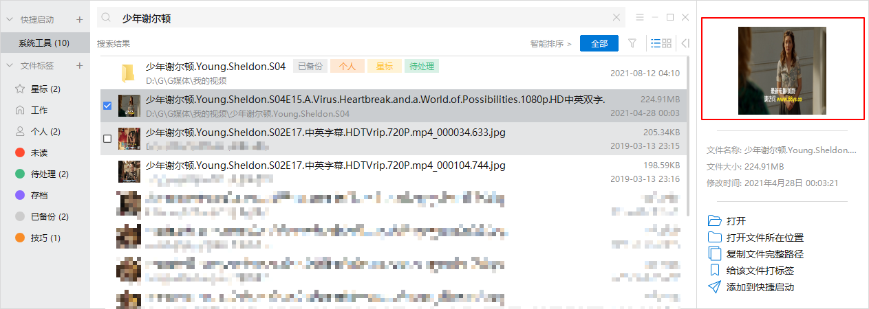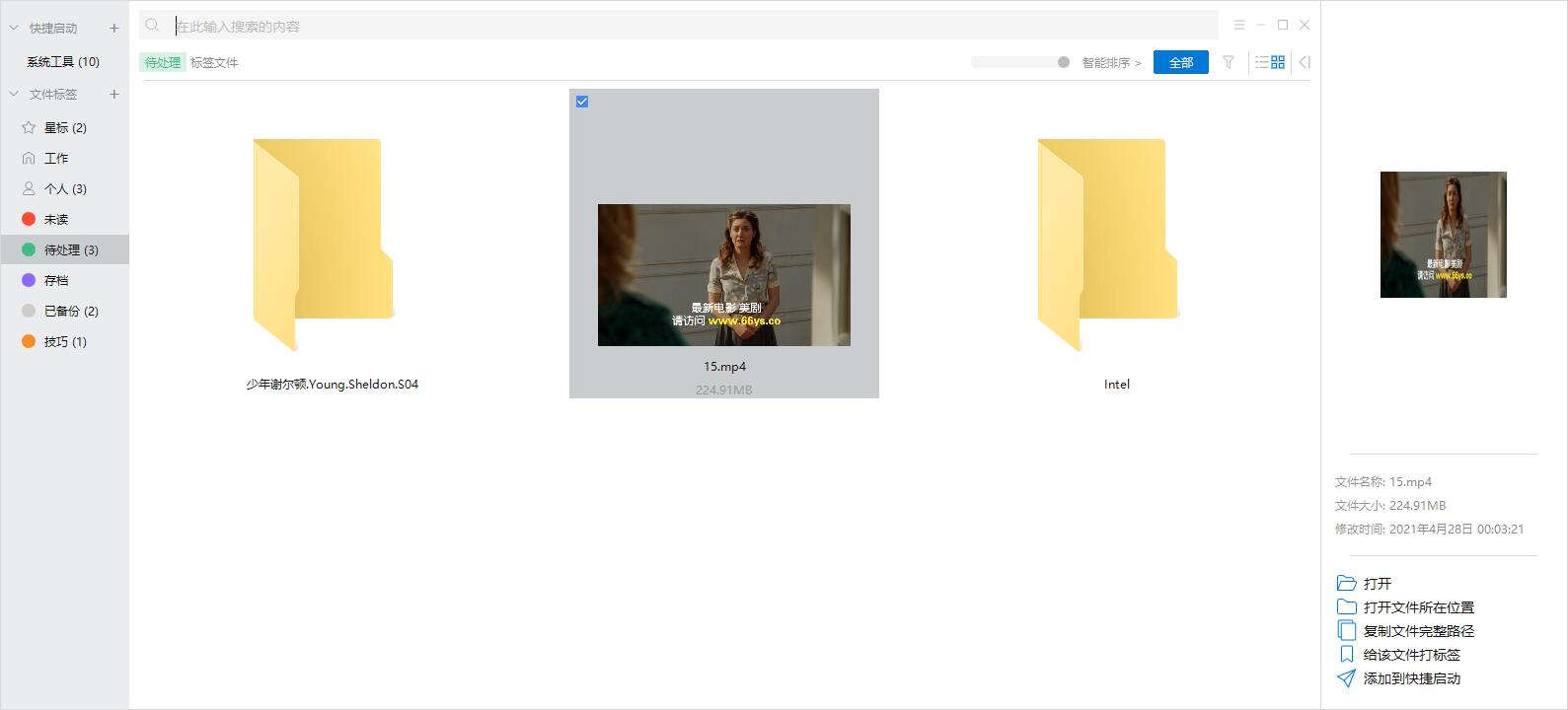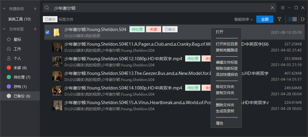 当文件有了标签之后,我们就可以通过任意一个标签或者多个标签组合快速找到想要的文件。而不是分别依次进入每一个文件夹里逐个进行查找。