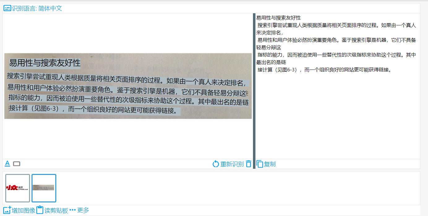 • 增加重新识别的按钮,切换识别语言后,已识别过的图片需要主动重新识别才能以新的语言识别