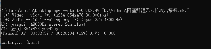- 用mpv命令可以跳转到指定时间了,用的是mpv --start=<时间>