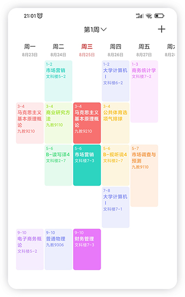 市面上现在有很多课表APP,但是大部分都疏于维护,更新缓慢,真正好用的并不多,所以我开发这么一款简单好用的课表APP,希望可以帮助在校大学生清晰明了地查看课程。
