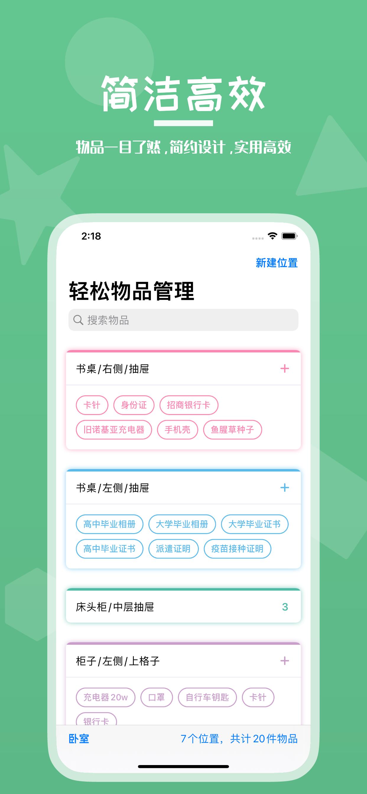 用于管理不常用的东西的位置,需要的时候在App内或者 iOS聚焦搜索中直接查找,例如:卡针、不常用的银行卡 等等