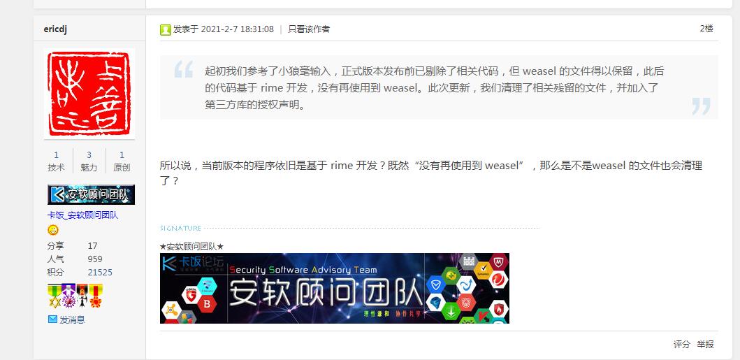 卡饭的更新速度可以说是非常给力,地主家傻儿子也不敢这样使唤啊,默默替开发人员的头发表示一下担忧。相比于许多已经停更了的输入法,以及那些虽然收集用户反馈但是宁死不改的输入法来说,卡饭的态度那真是用户就是上帝。卡饭自己有着一个论坛,在里面会发布一些官方的更新,用户就可以在里面畅所欲言,提出自己的建议和自己发现的bug。只要是正经的问题和合理的反馈工作人员马上就出来解答,工作效率那真是没得说。