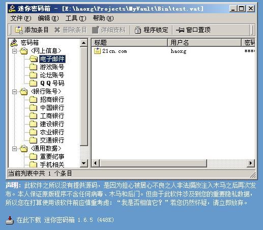 链接是 : http://www.haoxg.net/tools.html#myvault 或者点击 我的密码箱