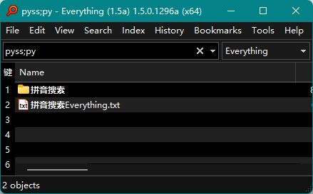 拼音搜索对调用 Everything 进行搜索的第三方程序同样生效,例如: