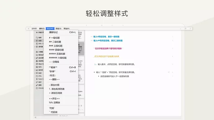 Effie 轻量易学的标记语法,让你无需动用鼠标即可轻松调整文章样式,使用键盘即可完成标题、加粗、标注等排版效果。
