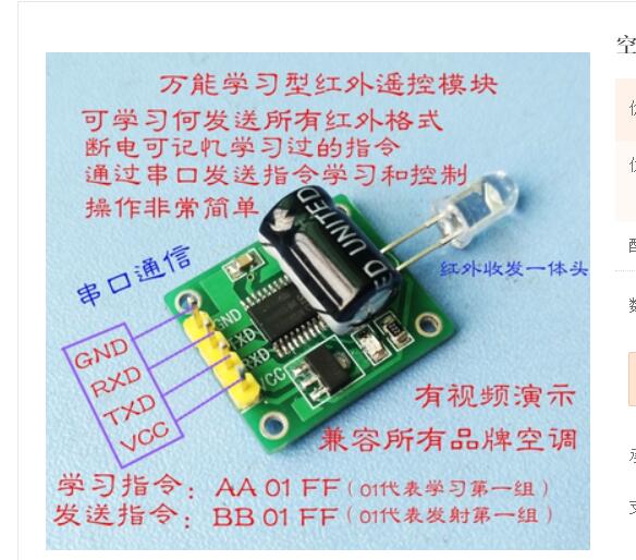 - 红外模块是直接在淘宝买的,直接学习遥控器指令