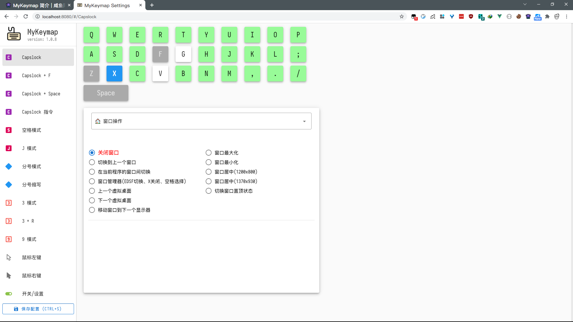 如下图所示, MyKeymap 内置了许多层模式, 每一层都可以自定义