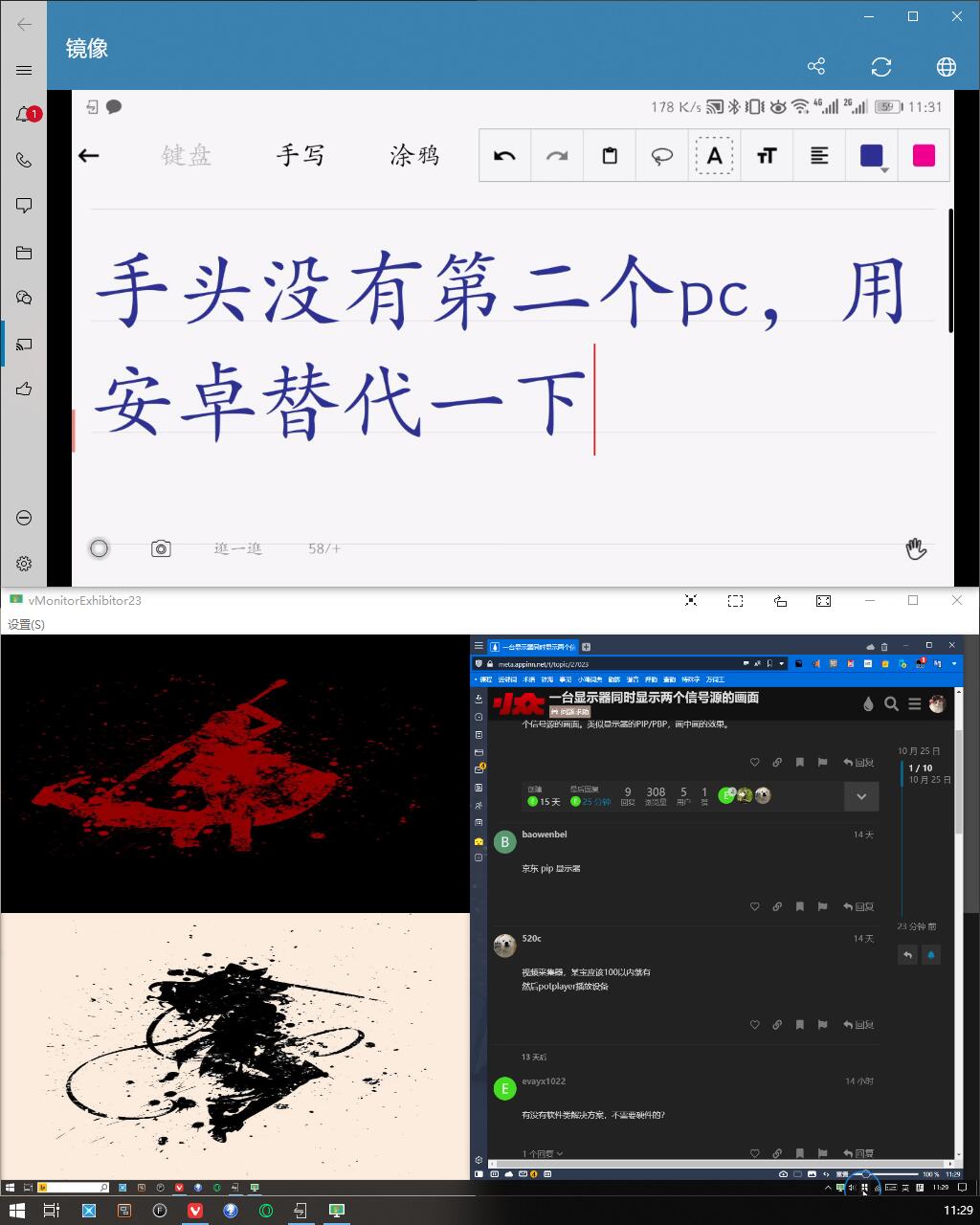 一台显示器同时显示两个信号源的画面,不是使用切换器,KVM这类,是同一个画面,同时显示两个信号源的画面。类似显示器的PIP/PBP,画中画的效果。