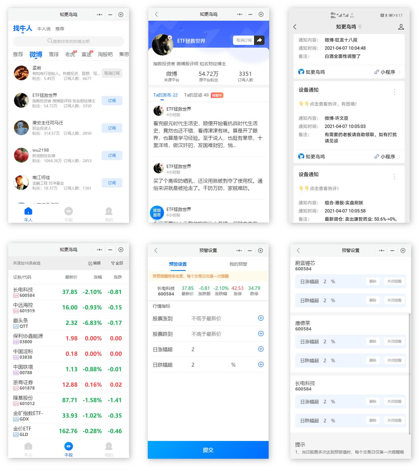 一键订阅各大股民交流社区(支持14个平台:微博、头条、雪球、公众号、淘股吧、集思录、股吧、韭菜公社、NGA大时代版等),通过微信服务号通知实时接收大V动态更新的免费工具。