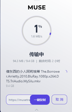 MuseTransfer 无需注册,免费使用,用它来传1G文件只要1分30秒