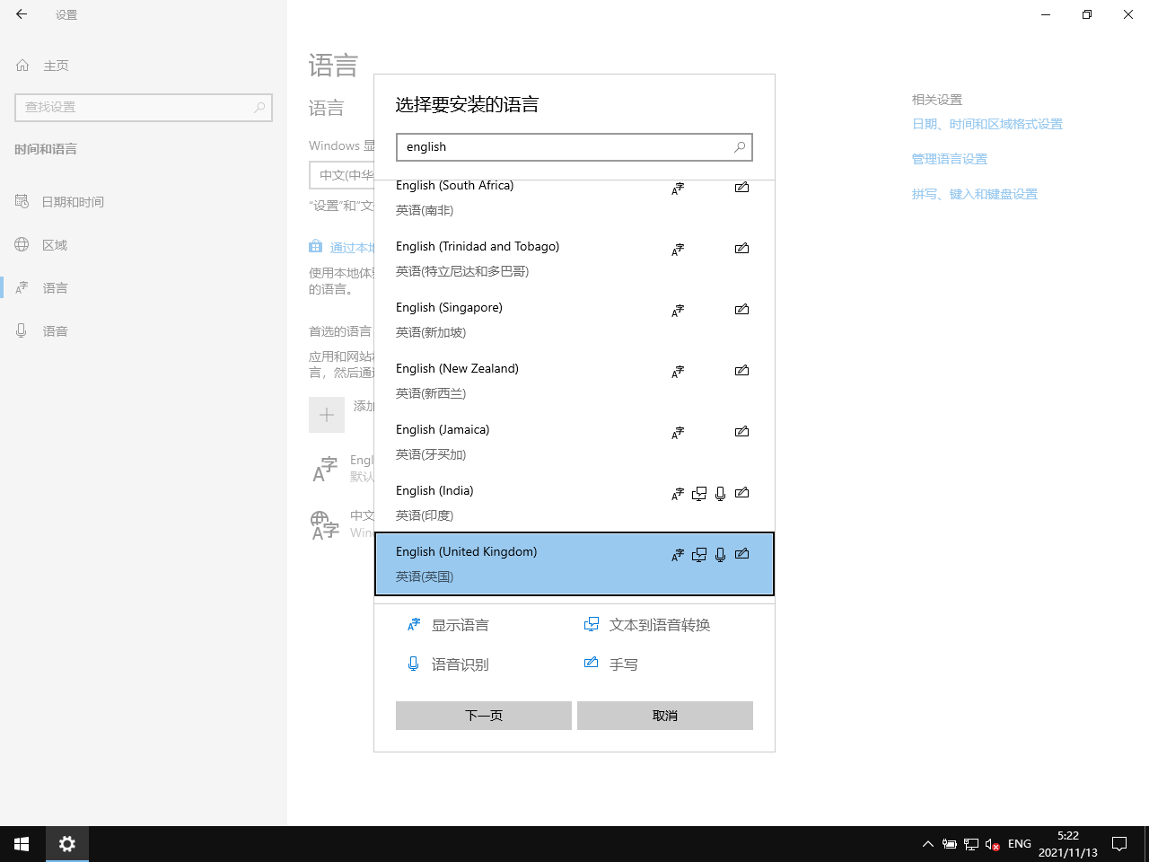 English (United States) 是“英语 (美国)”;Chinese (Simplified, China) 是“中文 (中华人民共和国)”。