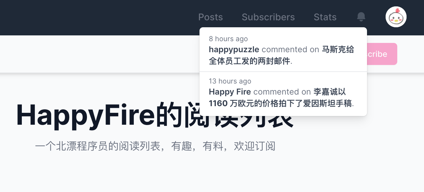 通知系统 有人订阅你的博客/有人评论了你的文章,你都会收到一封邮件