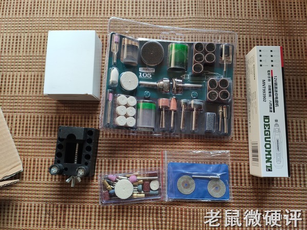 套装里面的这一套工具我就不挨个讲解了,搭配还算是比较实用吧。这里面所有砂轮和砂纸卷使用起来的效果都是挺好的,数量也还不少,各种角度都有,虽然那些砂轮柱的形状可能也粗糙了一点。砂纸卷的颗粒度也比较粗糙。