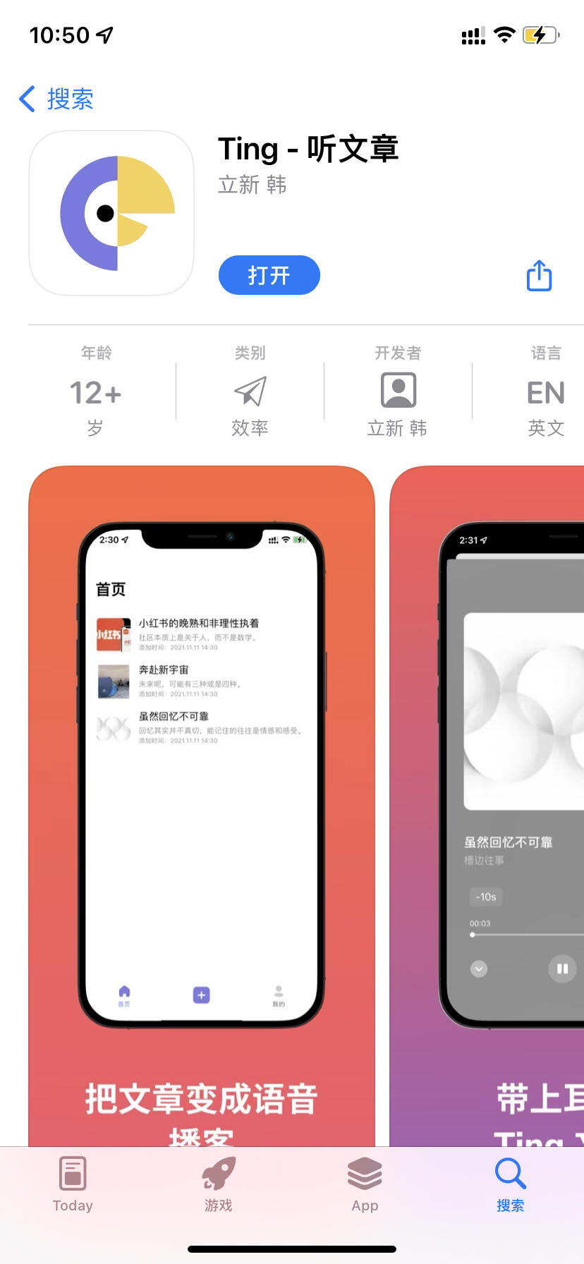 - Ting 帮你把没有时间看或者收藏忘看的文章,转为音频,让你可以在通勤路上或者工作的时候听