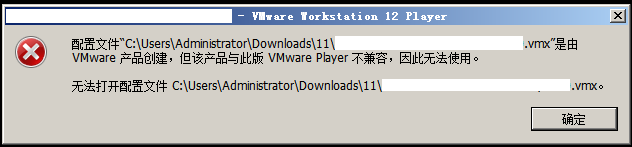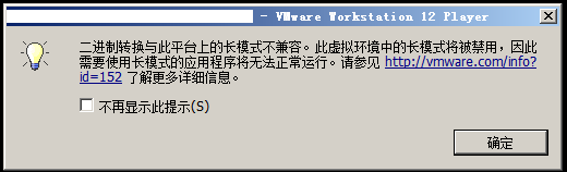 在一台安装了Windows server 2008的机器上安装了Vmware Player 12进行测试,出现如下的问题: