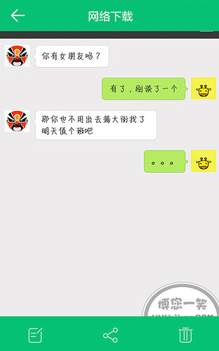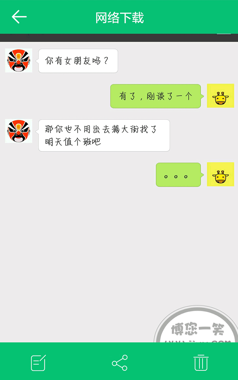 看段子,用机友仿聊;写段子,用机友仿聊;机友仿聊,一款好玩的聊天截图制作软件,可以模仿与朋友聊天,分享给朋友,恶搞他,还可以模仿与明星聊天,分享到朋友圈,瞬间逼格满满!360手机助手、豌豆荚等各大安卓市场均可下载!