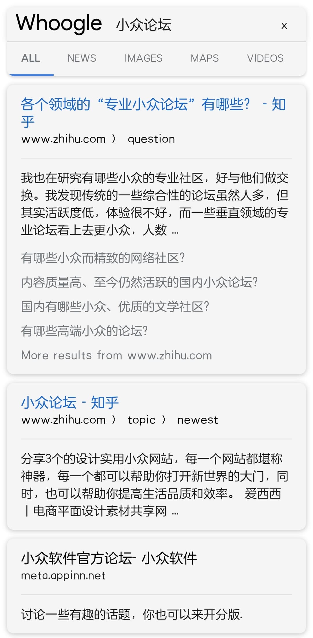 一个是元搜索引擎,另一个是过滤谷歌搜索结果的项目,使用感受都挺好的。