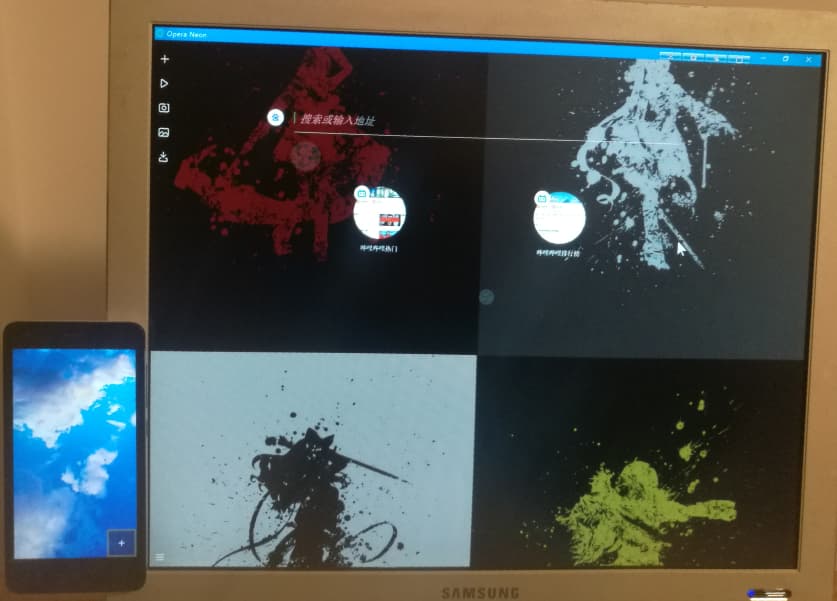习惯用鼠标的话,可以把手机放在屏幕侧边,像这样:
