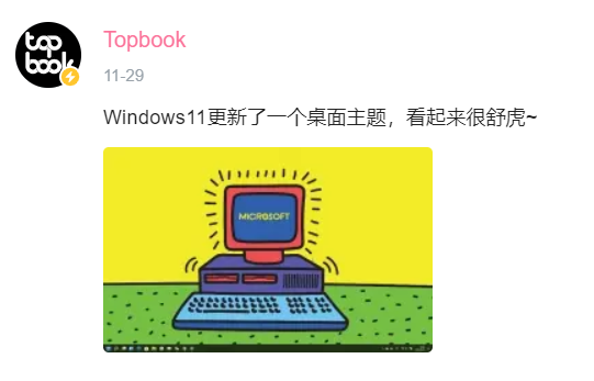 昨天晚上我不知是在某个网页还是某个公众号里面看到了一篇《win11系统更新带来多张全新壁纸》的标题,点进去后很多很好看的壁纸,壁纸是卡通,游戏,积木,复古,像素,之类的风格,颜色鲜明,很好看。