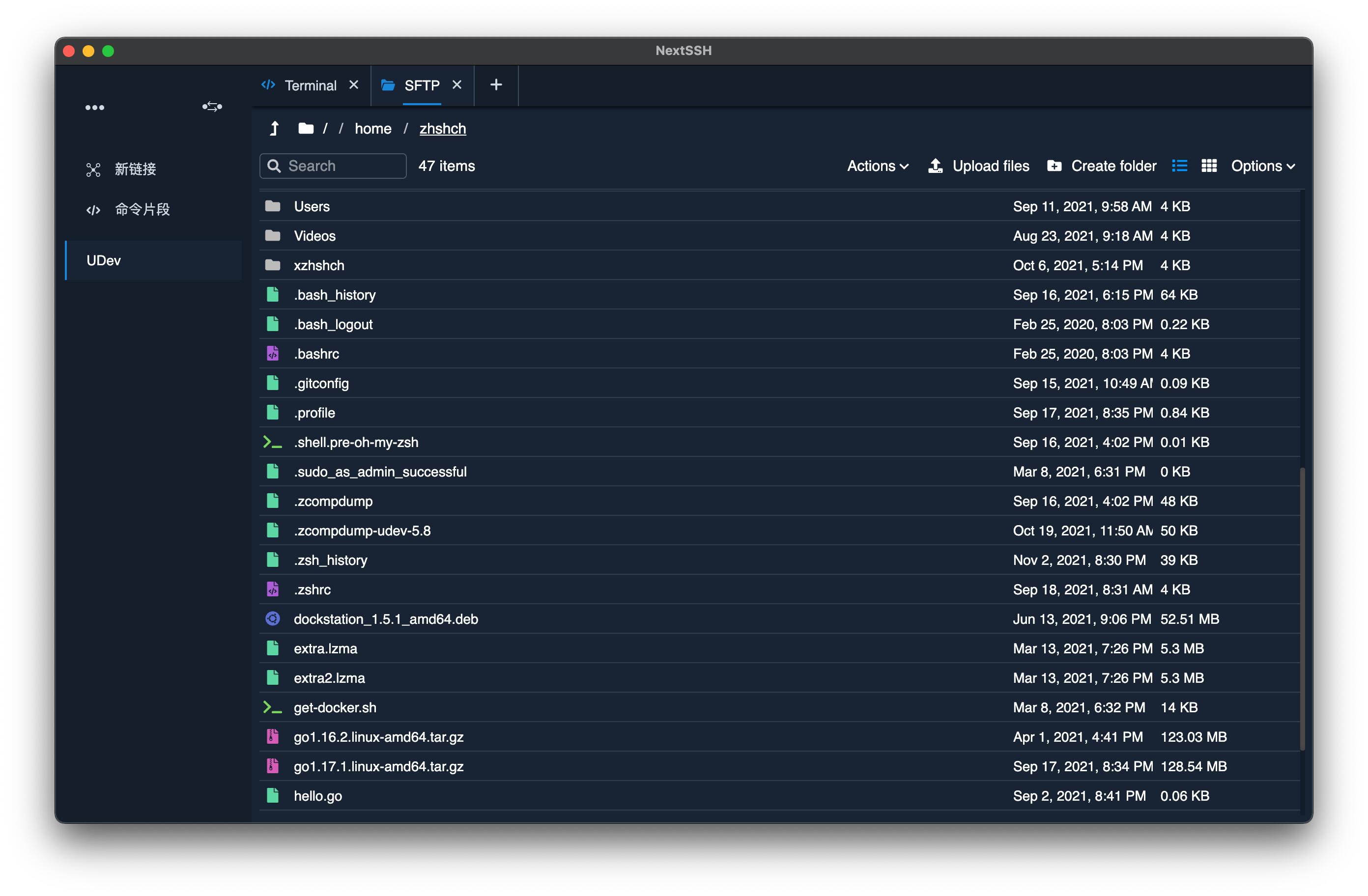 - SFTP 文件浏览器,支持拖拽文件,支持文件夹打包上传。