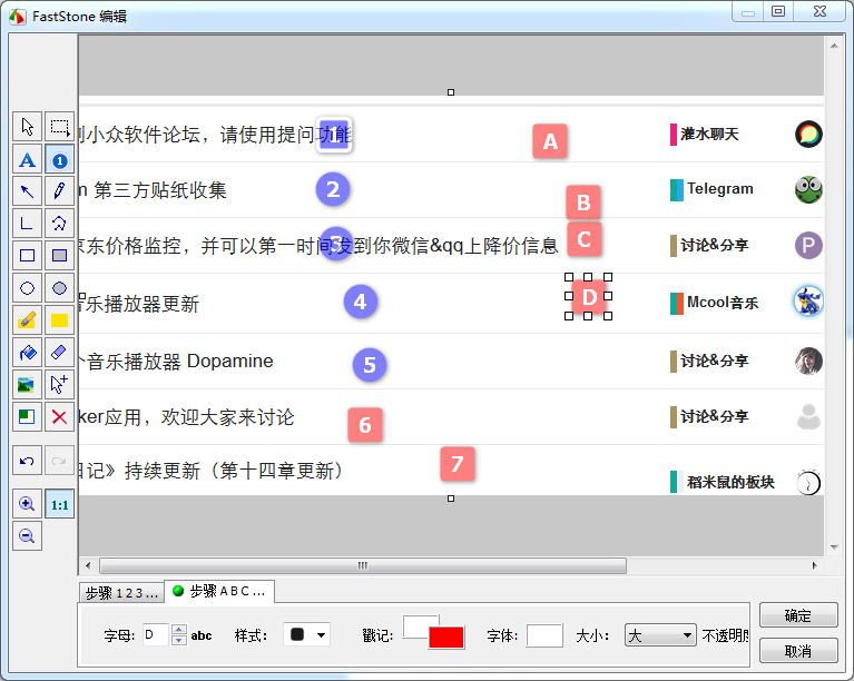 请推荐一款标注工具,像fast stone capture一样带有 圈123的功能,带圈ABC。。。
