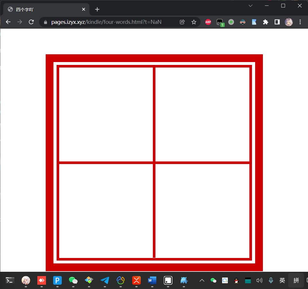 非常简单的一个小页面儿,就是以 2x2 的格子去显示 4 个文字。这像某些手机上的某个小部件那个样子。
