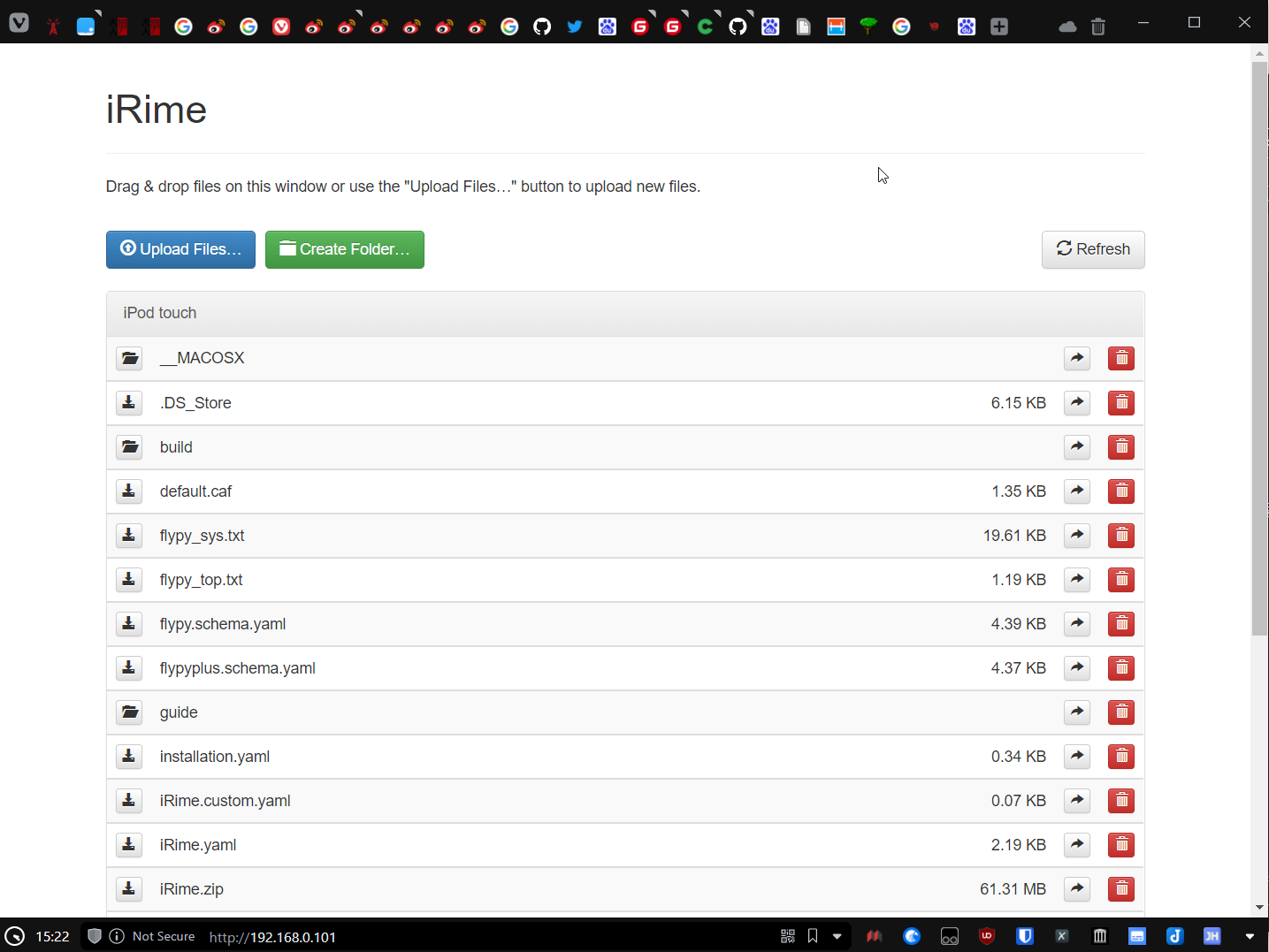 点击 iRime 图标,点击 PC Pass iRime ,也就是电脑快传。在电脑浏览器中敲入上面的 IP 网址。