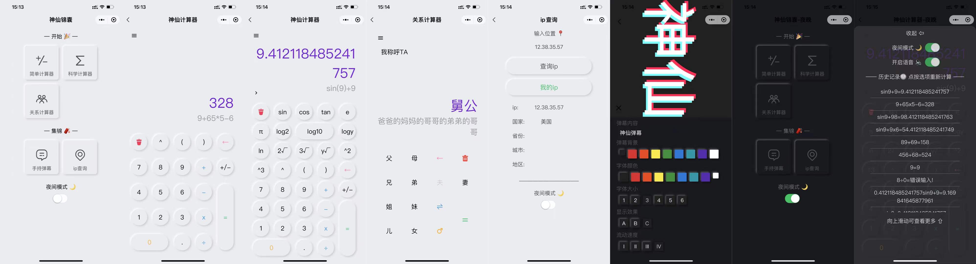 一个简单实用的小程序工具集,包含计算器、手持弹幕、IP查询等。后续会继续追加。