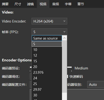 但是HandBrake里面的帧率最低只能到 5 FPS。