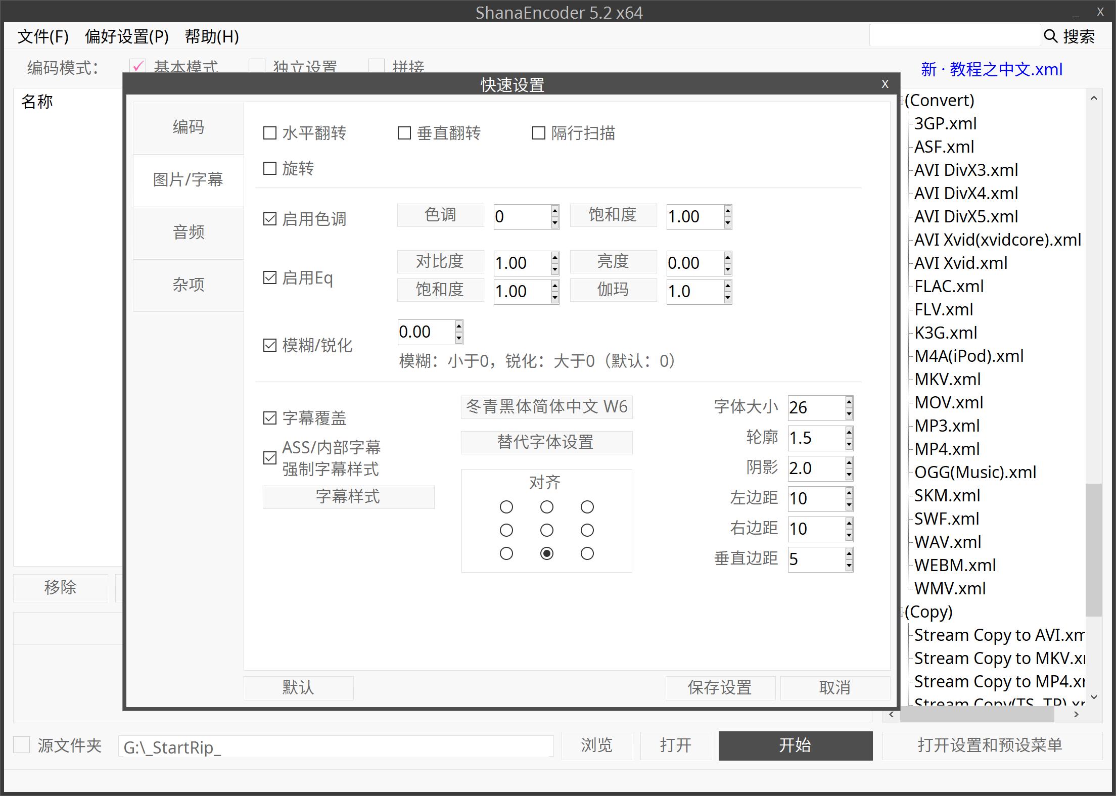 速度:该设置里的名称会根据编码器变化,其原则就是速度越慢,质量越高,体积越小。