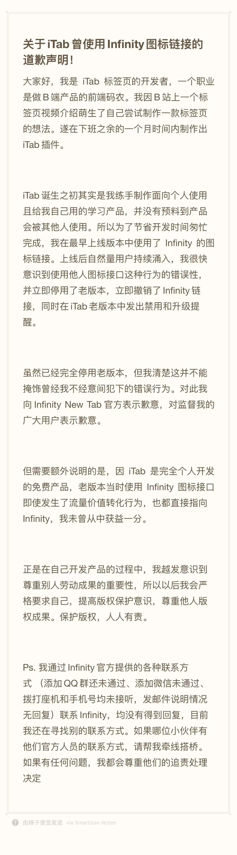 以前我都是面向B端开发,很少跟用户直接接触。现在我能直接听到用户的声音。这种感觉实在太棒啦!你们的肯定和鼓励让我充满了继续开发的动力,管他赚不赚钱,喜欢就干!做标签页的很多,最知名的Infinity已经做了十年,但我还是试图从另一个角度去创造更符合本土化办公场景的产品。尽管产品还有很多不完善的地方,但我会坚定做下去,认真打磨产品。希望大家都能找到热爱,并且努力定义出你渴望的模样,就像用iTab标签页定义你自己的风格一样。(如果想交流产品或反馈问题,可以加我微信xdlumia)