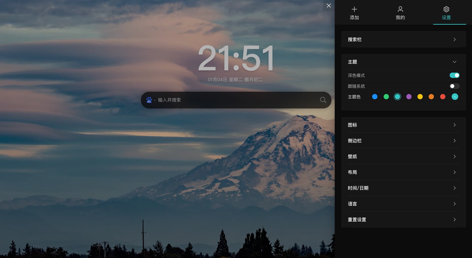 iTab标签页有深色和浅色两种模式,并且也可以选择跟随浏览器的规则变化。深色模式可以带来更强的沉浸感。