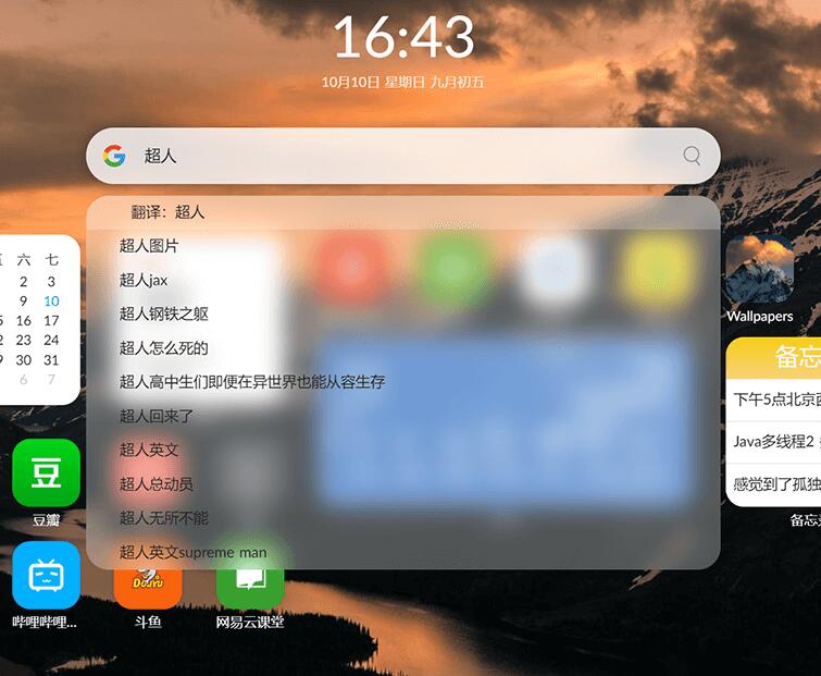 比如翻译功能,只要你在搜索框输入,下拉框会自动联想翻译,点击即可翻译。不用再额外下载或搜索在线翻译工具。(壁纸应用)