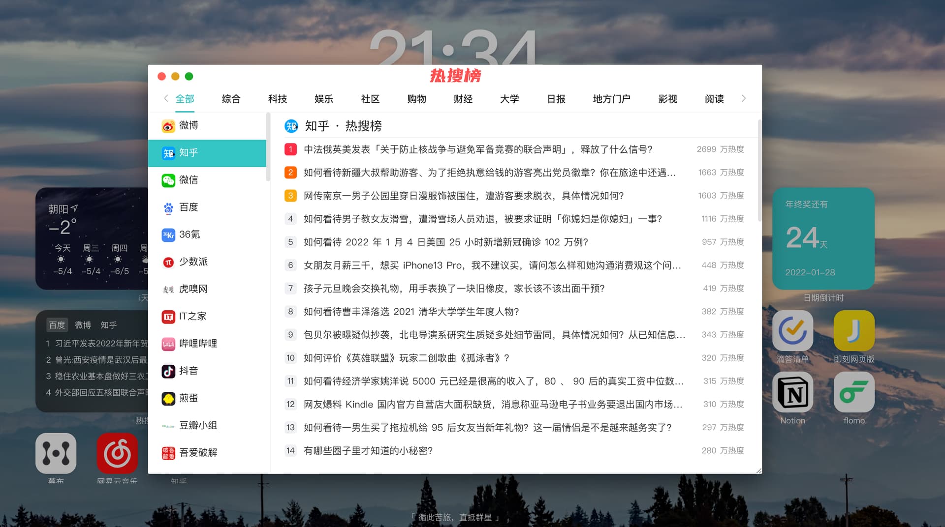 内置全网热搜榜小组件,实时动态刷新各个平台最新热搜新闻。