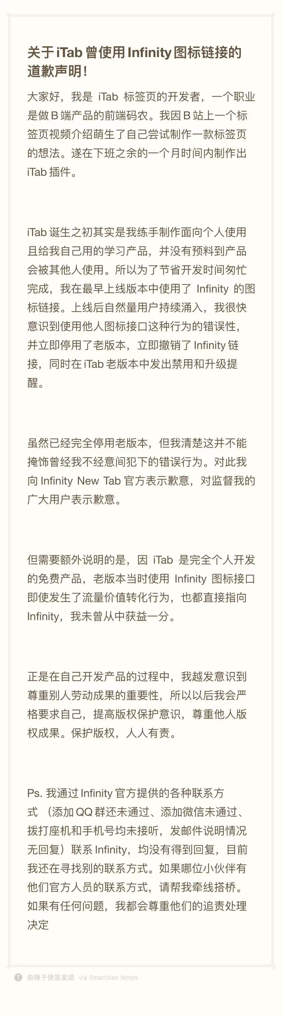 以前我都是面向B端开发,很少跟用户直接接触。现在我能直接听到用户的声音。这种感觉实在太棒啦!你们的肯定和鼓励让我充满了继续开发的动力,管他赚不赚钱,喜欢就干!做标签页的很多,最知名的Infinity已经做了十年,但我还是试图从另一个角度去创造更符合本土化办公场景的产品。尽管产品还有很多不完善的地方,但我会坚定做下去,认真打磨产品。希望大家都能找到热爱,并且努力定义出你渴望的模样,就像用iTab标签页定义你自己的风格一样。(如果想交流产品或反馈问题,可以加我微信xdlumia)
