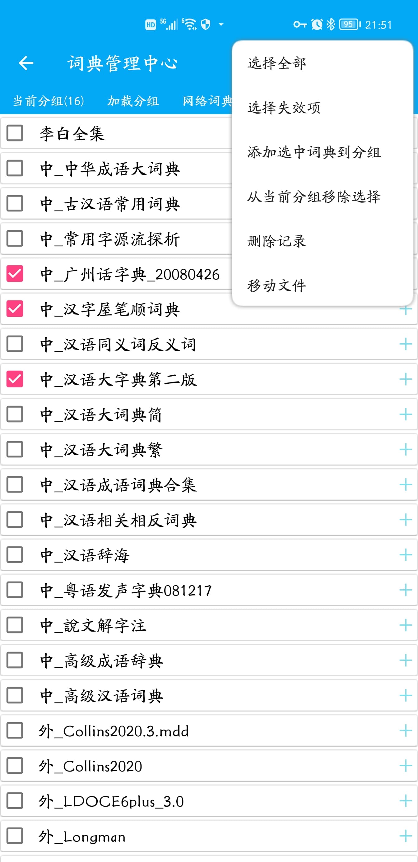 11.可以加载mdd文件。方法是长按侧栏中的“添加词典”。发音库要首先按此流程加载。