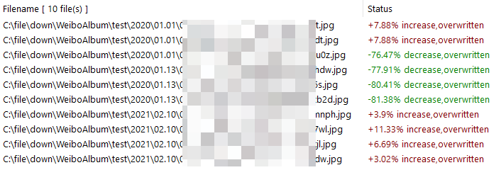 我搞了10张大小不一的图片,原始文件23M,处理完了以后文件名和位置都不变,真的变成10*1024KB这么大了!!