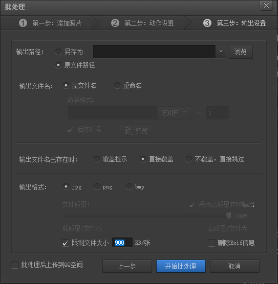 输出的照片目录可以是同一目录(通过附加字符串到文件名)