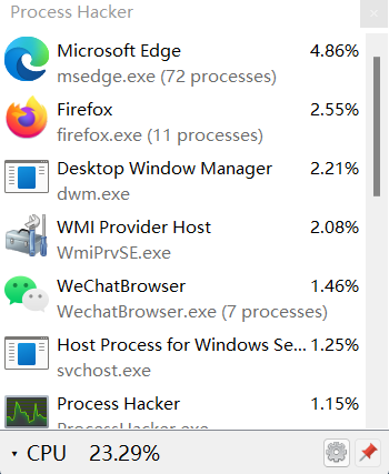 又发现了一个实用功能:鼠标移到托盘区图标上,可以唤出一个小窗口,展示指定资源的占用大户。这一窗口还能单独置顶。