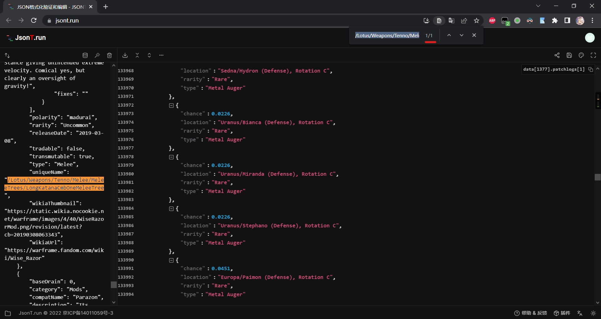 好的。可能还是按需加载功能产生的问题,假如我在一个比较大的json里在开头搜索一个在结尾的key时,不会自动滚动到对应位置。