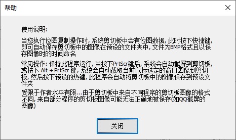 PrtScr键是系统自带的截屏键,按了之后屏幕图像就被保存到剪切板上了,这个工具能自动从剪切板中获取图像保存下了