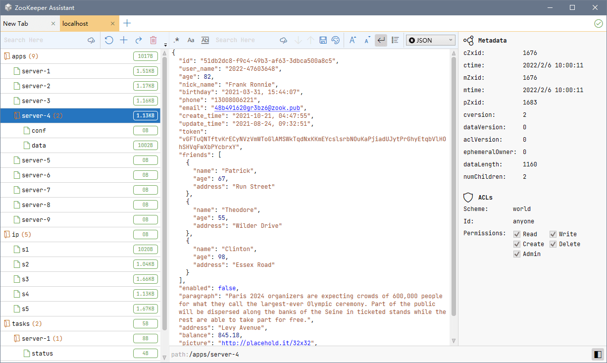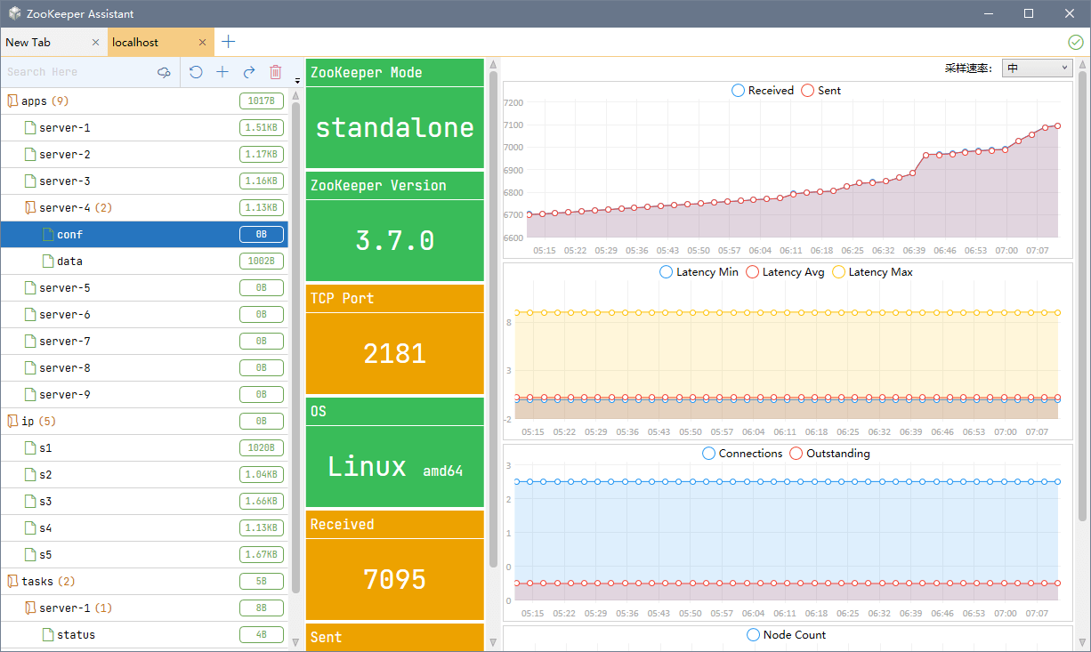 ZooKeeper 可视化管理与监控——以树状结构展示节点、监控服务器状态、多种数据格式:JSON、XML、HEX、MessagePack。