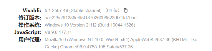 浏览器是Vivaldi 5.1,约等于Chrome 98