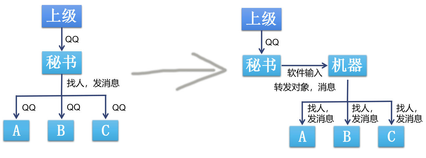 一方面让人能和机器沟通,在零编程基础的情况下,让计算机帮助完成繁琐重复性质的的工作,以为创造性工作节省出更多时间。操作键盘鼠标发微信、图像识别、语音识别等等。