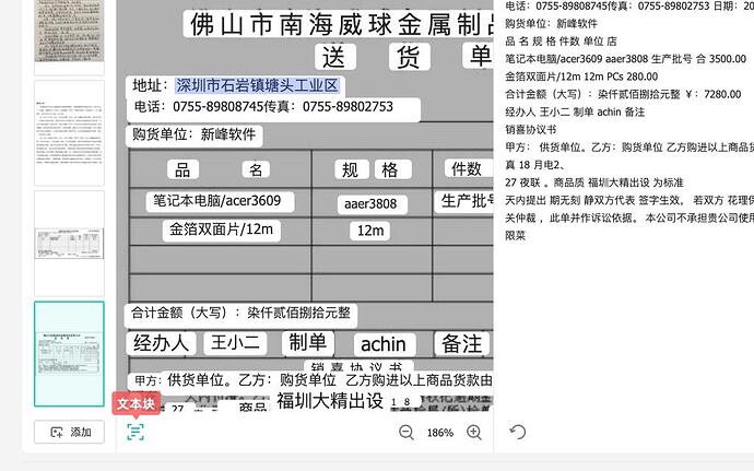 比如有一张送货单,如果你只想复制上面的地址,在全部文本中找稍稍有点困难。不如开启图片的「文本块」显示模式,即可直接在图片上,用鼠标拖动选择需要的文字,「Ctrl+C」就可以复制了。