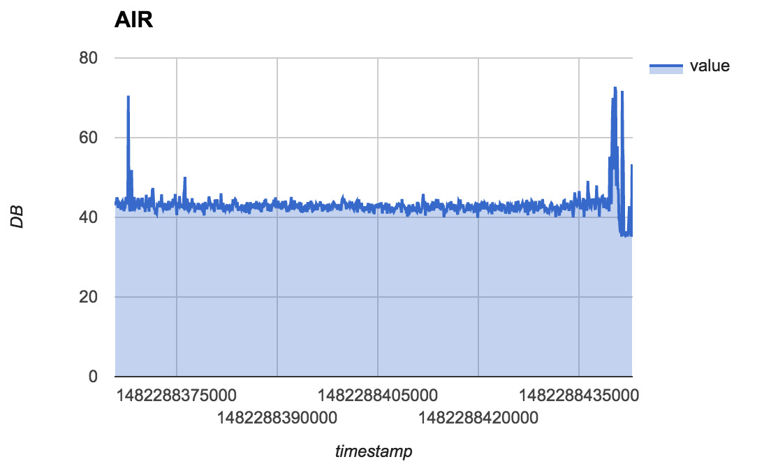 不过今天测试的时候,在一个比较大的门缝附近,AQI 还是超过了 100,但离 1 米的地方,就下降到了 50,而这个时候房间中央大概在 30 以下。